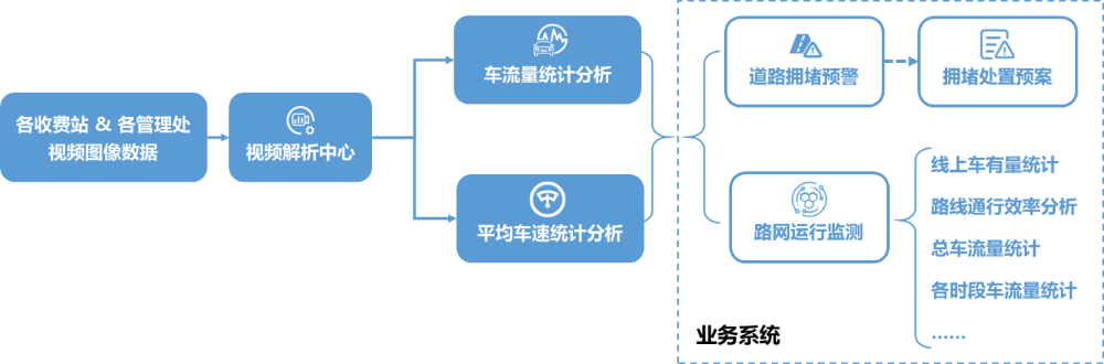 顺利获得对各路段视频数据进行解析,实现车流量、各断面平均通行速度、车密度的分析和统计。当车流量、平均通行速度、车密度到达一定阈值时,进行道路拥堵趋势预警,并联动启动拥堵处置预案;顺利获得对汇聚的各路段沿线视频监控数据进行AI分析,获取各路段车辆所有量、各监控断面车流量、各断面车辆通行速度,对省辖区路网运行状况进行监测,并顺利获得业务系统可视化展现整体高速公路网的交通态势和各路段的交通通行状况。