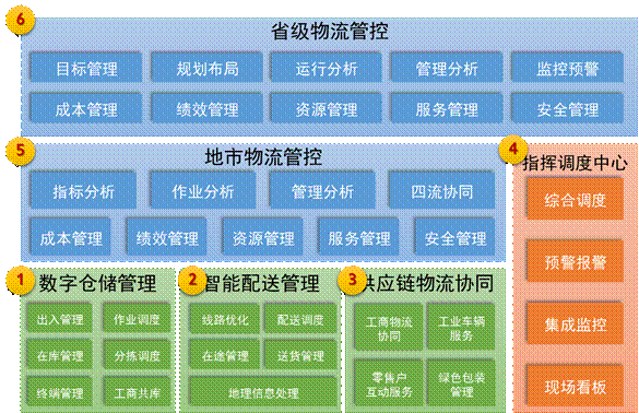 省级物流管控系统给予省级物流处对全省物流的全面掌控和分析决策功能。包括省级的成本管理、绩效管理、资源管理、安全管理、服务管理以及目标管理、规划布局、运行分析、管理分析和监控预警等。